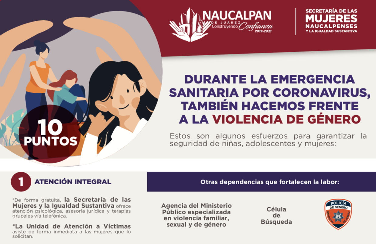El Plan Interinstitucional Emergente para Prevenir la Violencia de Género ante la emergencia sanitaria por COVID-19 está compuesto por 10 acciones concretas, las cuales fueron estructuradas con perspectiva de género y derechos humanos.