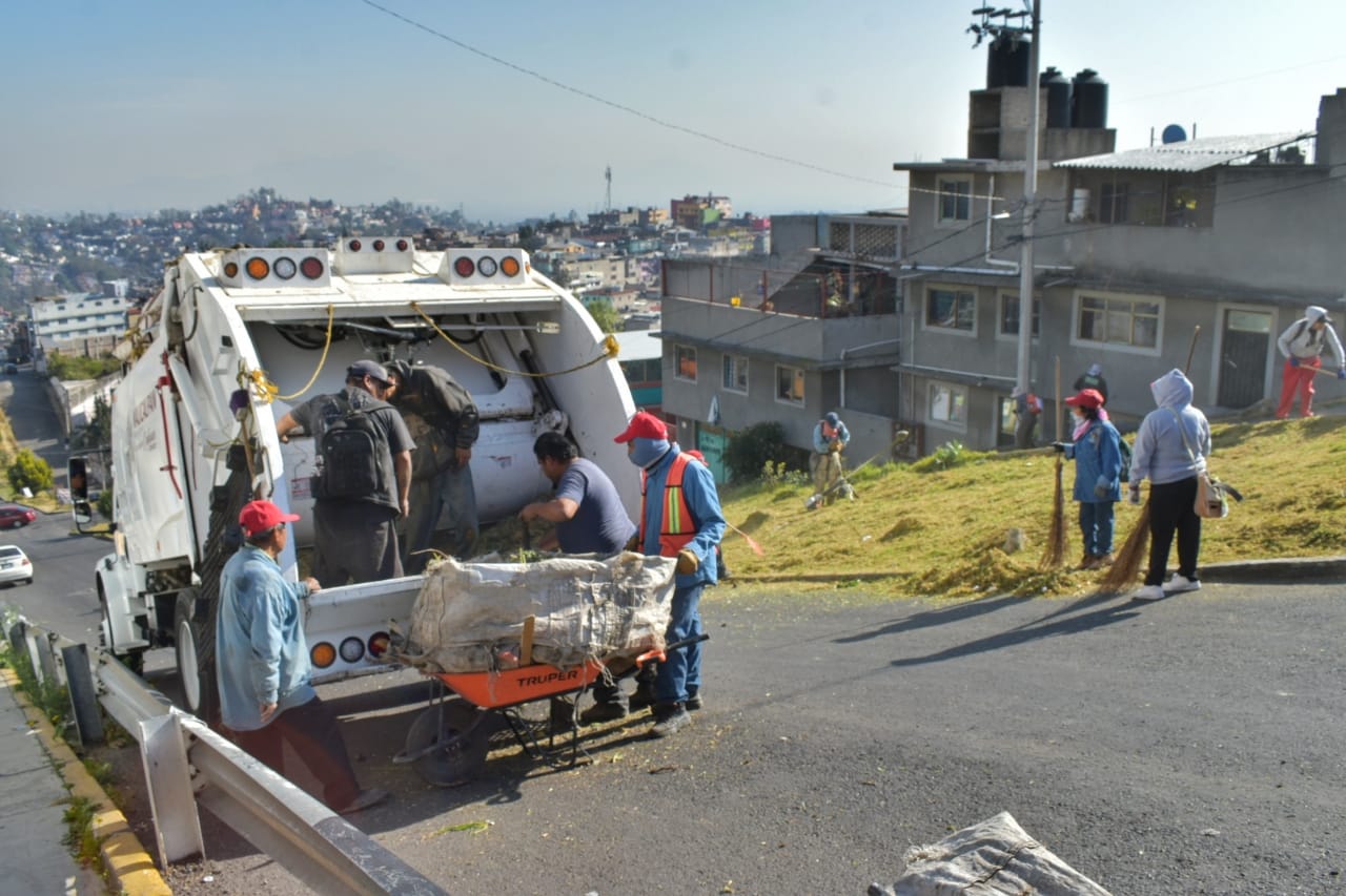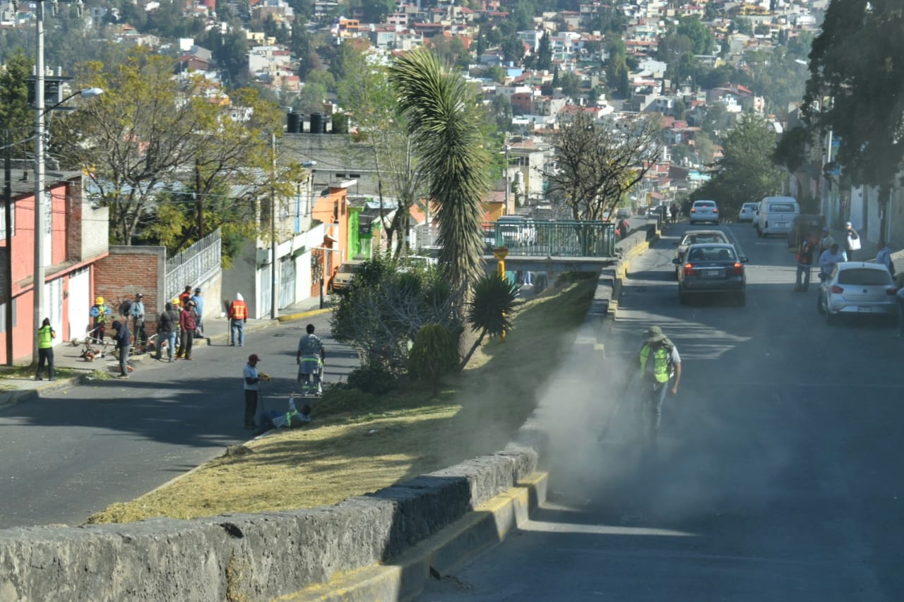 La Secretaría de Servicios Públicos llevó a cabo un operativo de limpieza en la Avenida Gasoducto, ubicada en la Primera Sección de Las Huertas.