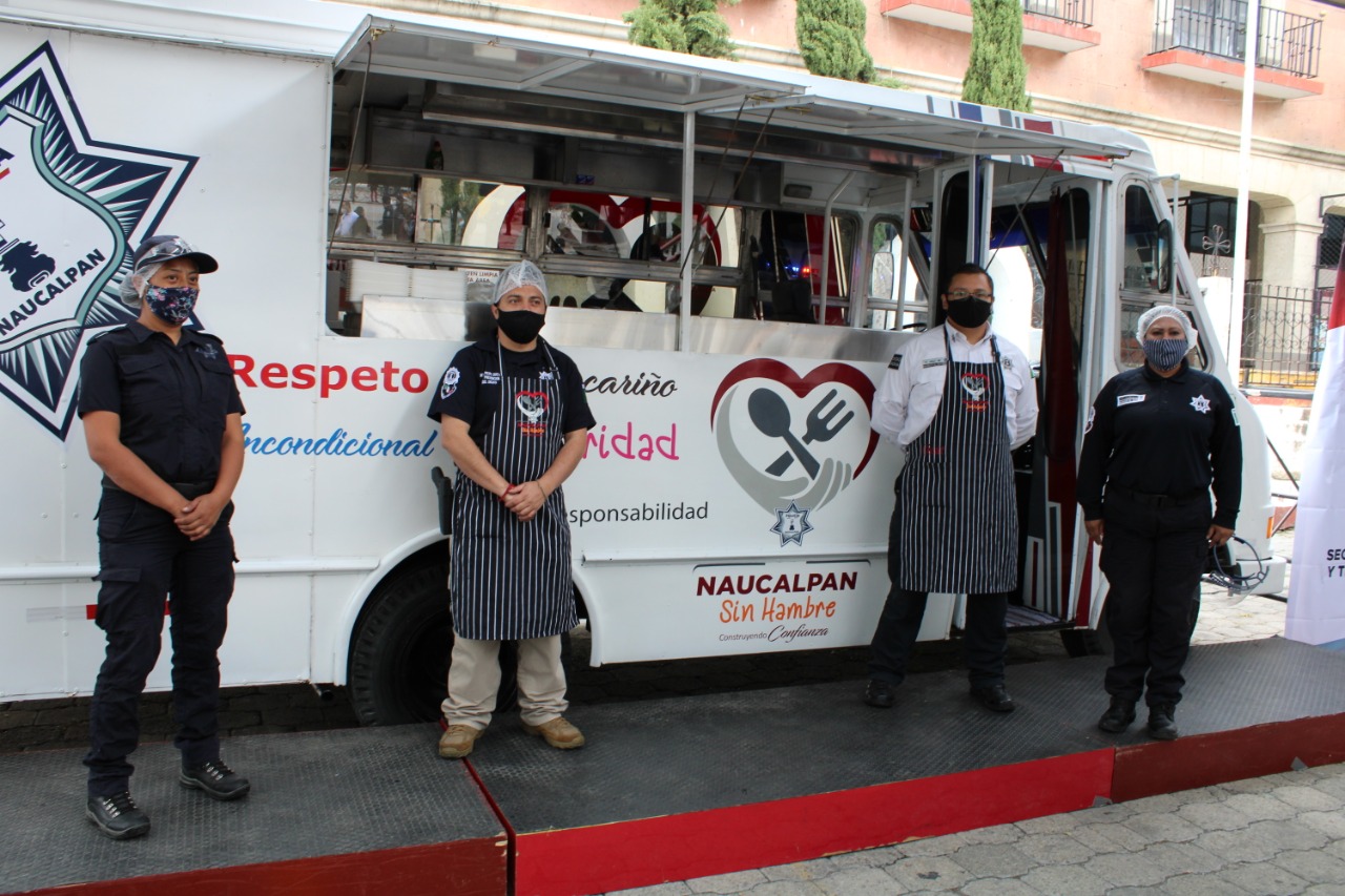 Para apoyar el reparto de la comida, elementos de la corporación recuperaron una unidad perteneciente a la Dirección de Seguridad Ciudadana y, por instrucción de la Presidenta Municipal, Patricia Durán, fue acondicionada como food truck. Desde el pasado 17 de octubre, el vehículo acude a diversas comunidades para ofrecer el apoyo alimentario.