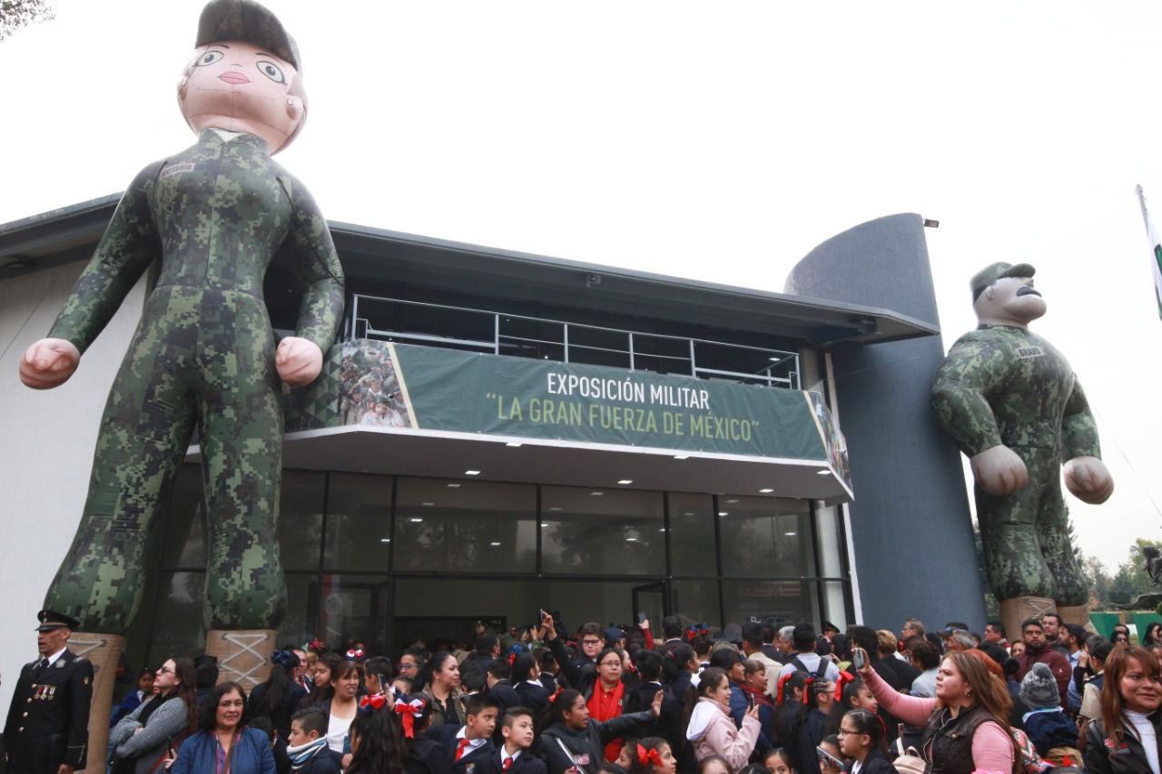 “La gran fuerza de México” se integra de más de 200 piezas, entre fotografías, armamento e indumentaria, además de vehículos de combate, aeronaves y embarcaciones.
