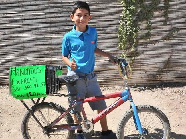 El día a día de Julio Manuel es muy distinto al de la mayoría de quienes tienen su edad, 12 años. Se levanta temprano para acompañar a su mamá al trabajo en la Taquería Lencho, en Ruiz Cortines, Guasave, y desde hace unos días también para comenzar desde las 6:00 horas con su labor: hacer mandados a domicilio.