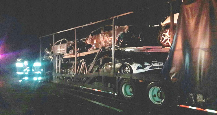 Algunos testigos del incidente mencionaron a través de redes sociales que el pesado camión circulaba a exceso de velocidad. Tras el impacto, se produjo un incendio que alcanzó a los 10 vehículos que eran transportados en la nodriza.