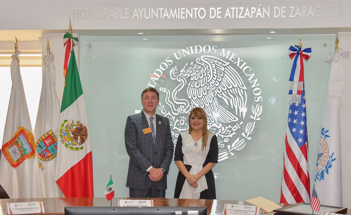 El gobierno de Atizapán de Zaragoza y la Ciudad de Sanford, Carolina del Norte EUA, consolidan hermanamiento para impulsar desarrollo de los sectores educativo, manufacturero y comercial. La Alcaldesa Ruth Olvera recibe de manera simbólica las llaves de la ciudad norteamericana.