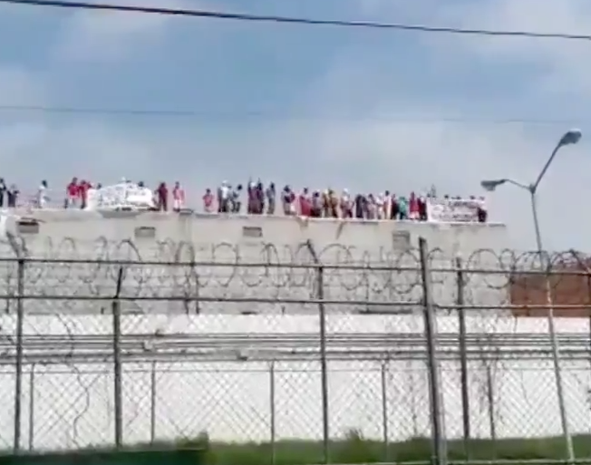 Extraoficialmente se dice que los reclusos han salido a los espacios abiertos y han subido al techo del edificio principal para mostrar unas lonas con mensajes escritos.