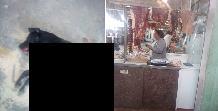 Oaxaca.- En el mercado de la Villa de Etla, en Oaxaca, un carnicero mató a una perra a cuchilladas por haber mordido un trozo de carne, esto ha provocado la protesta de animalistas y personas que acuden a este establecimiento.