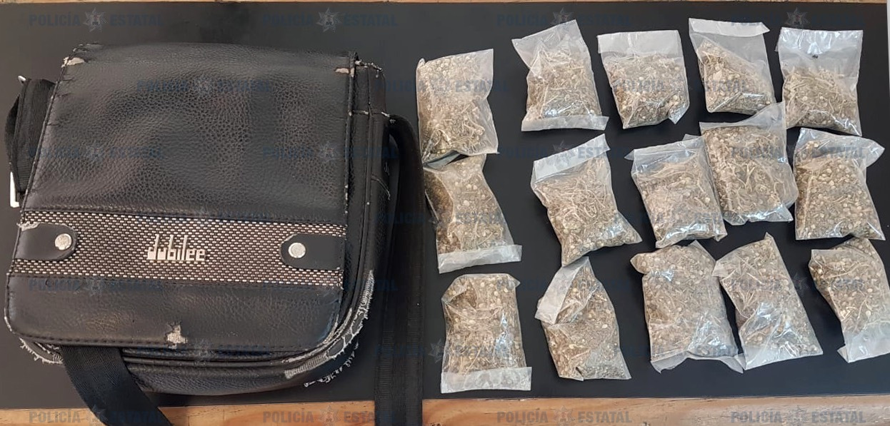 De forma inmediata se desplegó un operativo que derivó en su captura; acorde al protocolo se efectuó una revisión preventiva avsu persona y se le localizaron 15 bolsas de plástico con hierba verde, con las caracteristicas propias de la marihuana.