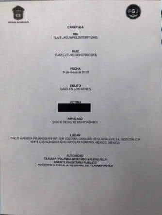 Posteriormente los afectados se presentaron ante el agente del Ministerio Público local para levantar la denuncia correspondiente por el delito de daño en bienes en contra de quien resulte responsable.