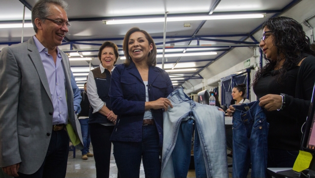 En recorrido de campaña por el municipio de Ixtapaluca, la abanderada panista se reunió con empresarios y visitó una fábrica de pantalones de mezclilla, donde anunció además que apoyará con reducción de impuestos a las empresas que contraten madres jefas de familia, personas mayores de 50 años y con discapacidad.