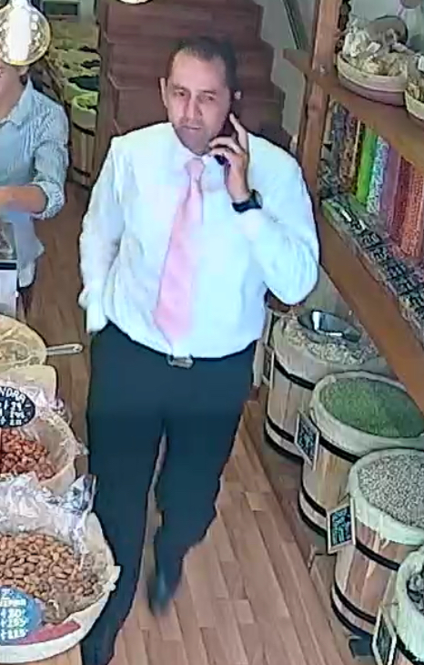 En el video puede verse un hombre que simula llamar por teléfono con alguien y en cuanto la dependiente sale de detrás del mostrador para atender a otra persona, este hombre enseguida se acerca y se lleva el celular con toda la intención y después sale de la tienda.