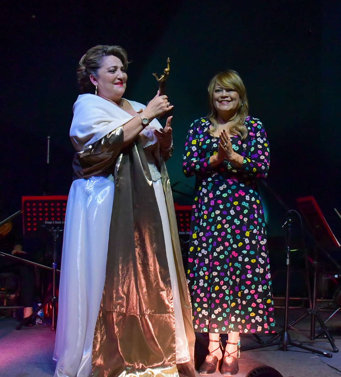 La Presidente Municipal Ruth Olvera agradeció a la soprano Martha Juliana su participación en el FICA, quien con su canto abrazó a los asistentes.