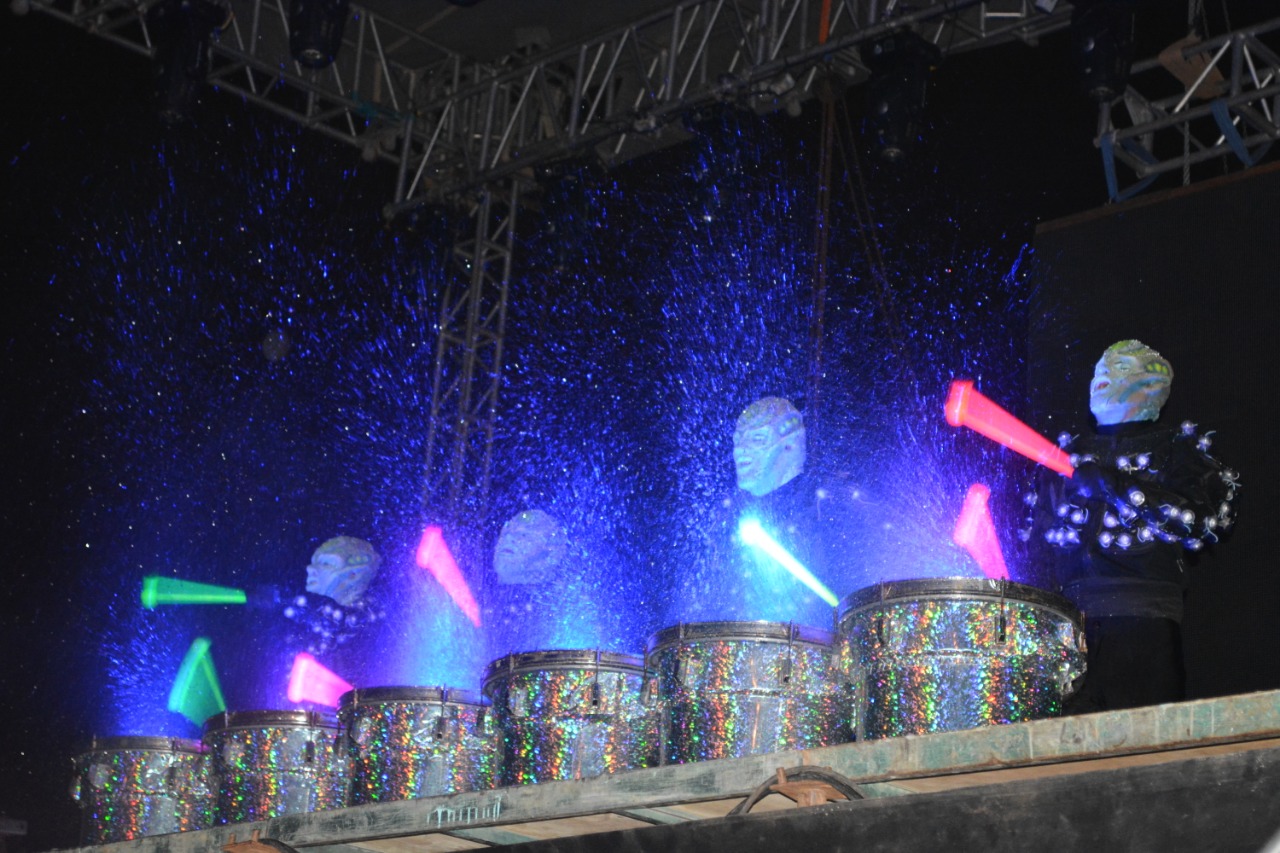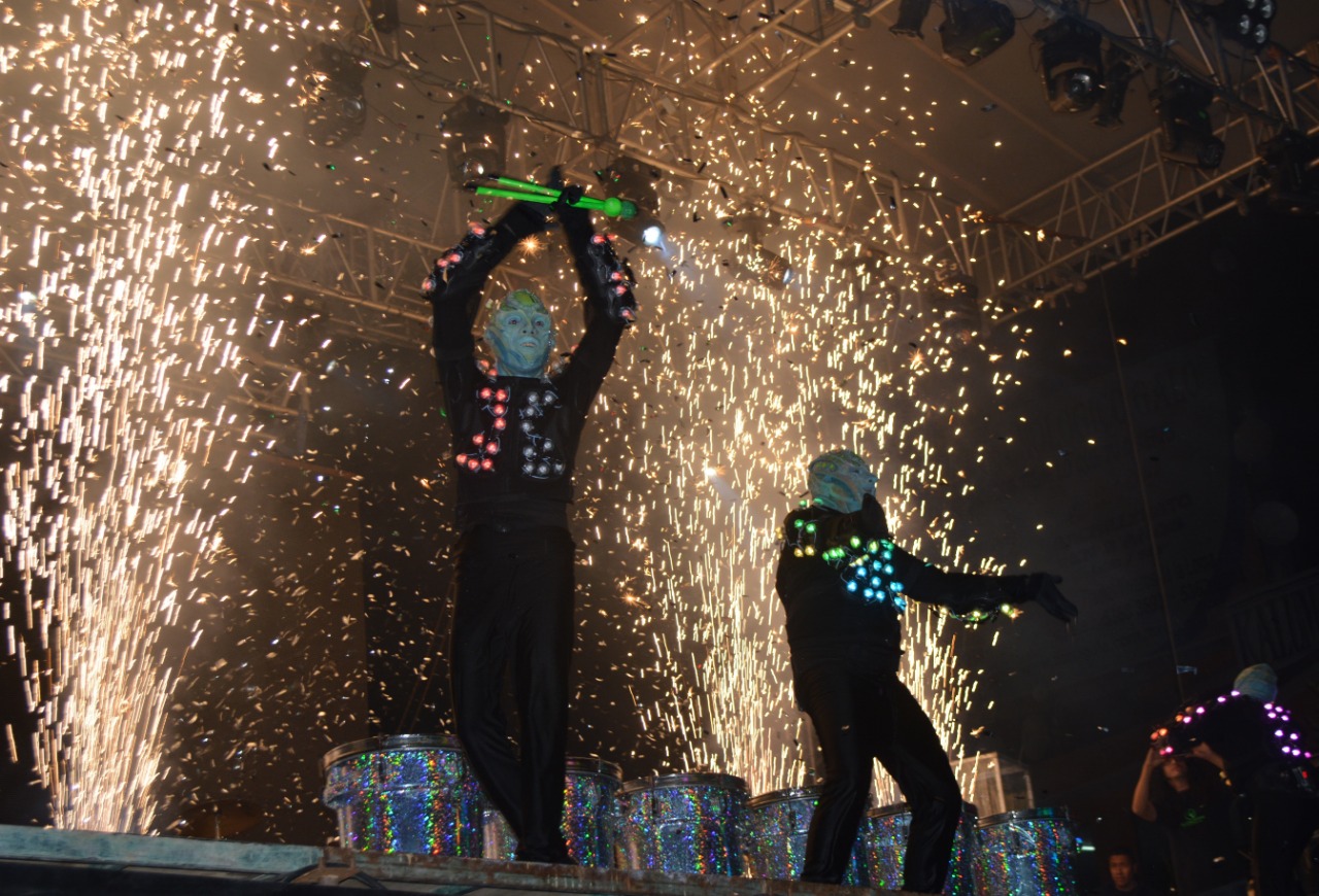 En el Monumento a Ignacio Zaragoza, cientos de personas se dieron cita para disfrutar el espectacular performance musical del cuarteto “Glowman Show” que hace uso de tambores de agua, trajes con luces LED y pirotecnia para recrear un ambiente de fiesta y diversión.