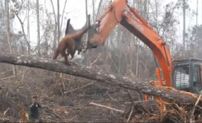 Estas imágenes fueron grabadas en 2013 y esta semana han sido difundidas por International Animal Rescue, una organización mundial en defensa de los animales. En sus redes sociales la entidad escribía, “Este orangután desesperado busca frenéticamente refugio ante el poder destructivo de la excavadora, una máquina que ya ha diezmado todo lo que le rodea”.