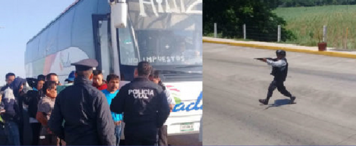 Cuando se transportaban en autobús por la carretera México-Cancún, padres de los 43 normalistas de Ayotzinapa que desparecieron hace casi 3 años, fueron bajados a punta de pistola por elementos de la policía vial.