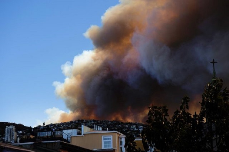 Las autoridades indicaron que las altas temperaturas y el fuerte viento contribuyeron a aumentar la extensión de este incendio que afecta a Valparaíso, uno de los lugares más visitados de Chile.