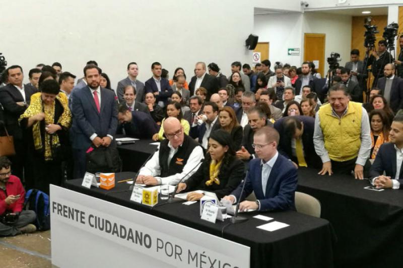 Los líderes de PAN, PRD y Movimiento Ciudadano formalizaron ante el Instituto Nacional Electoral (INE) la intención de trabajar juntos hasta 2024 en un Frente Ciudadano por México, cuyo objetivo será ir por un gobierno de coalición.