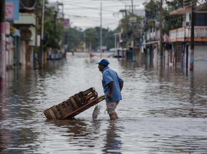 El río Papaloapan se encuentra un metro por encima de su nivel de aguas máximas ordinarias, a 2.80 metros de altura, lo que ha provocado inundaciones en las zonas más bajas de Tlacotalpan, Veracruz.