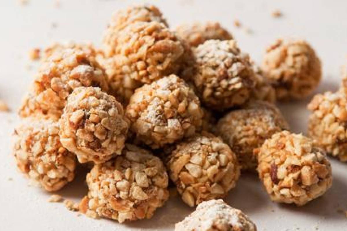 – Coloca el maní restante sobre un plato. Forma la mezcla anterior en bolitas de una pulgada y pásalas por el maní picado. Ponlas sobre las placas preparadas y refrigéralas antes de servirlas. Espolvoréalas con azúcar en polvo.