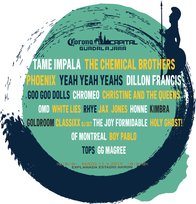 Tame Impala, The Chemical Brothers, Phoenix, Yeah Yeah Yeahs, The Joy Forminable, Holy Ghost!, Boy Pablo, Of Montreal, Dillon Francis GG Magre, Tops, Jax Jones, Rhye, Kimbra, Honne, Classixxx DJ Set, Goldroom, White Lies, OMD, Christine and The Queens y Chromeo formarán parte del Corona Capital Guadalajara 2019, y de acuerdo a un comunicado de prensa, este festival será el único evento en el que se presenten las bandas lideradas por Kevin Parker y Karen O, respectivamente.