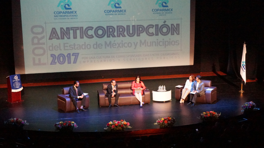 El Fiscal Especializado en Combate a la Corrupción, de la Fiscalía General de Justicia del Estado de México (FGJEM), José de la Luz Viñas Correa, participó en el Foro “Anticorrupción del Estado de México y Municipios 2017”, organizado por la Confederación Patronal de la República Mexicana (COPARMEX), donde reconoció que para atacar la corrupción el binomio servidores públicos-ciudadanía es fundamental.