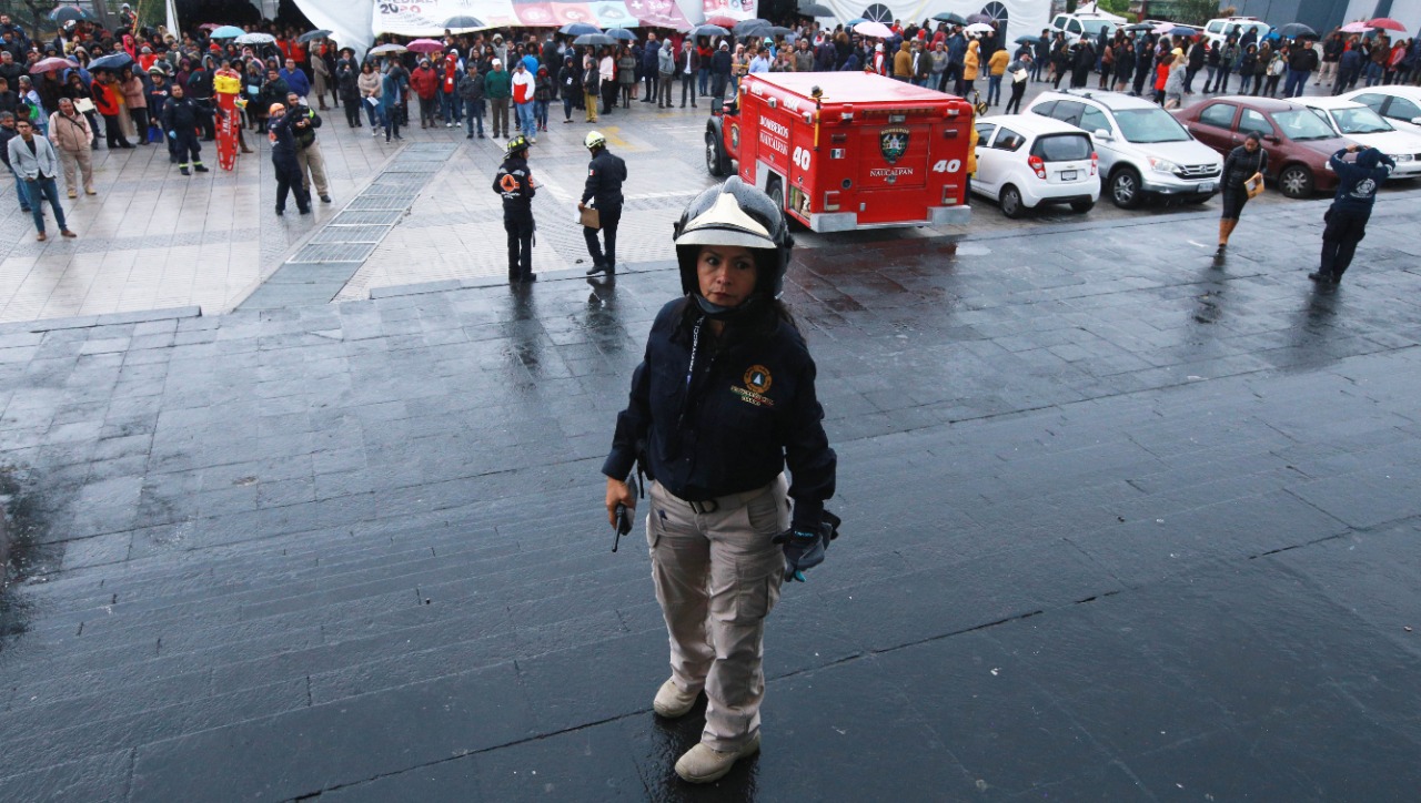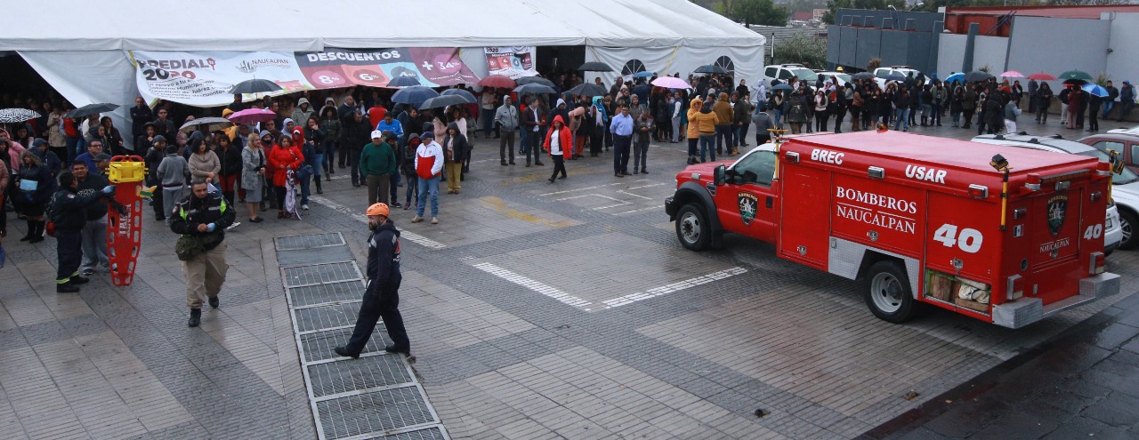 Autoridades de la coordinación de Protección Civil y Bomberos de Naucalpan ejecutaron su protocolo para dirigir a todo el personal del Palacio Municipal y el edificio anexo hacia las zonas seguras de la explanada.