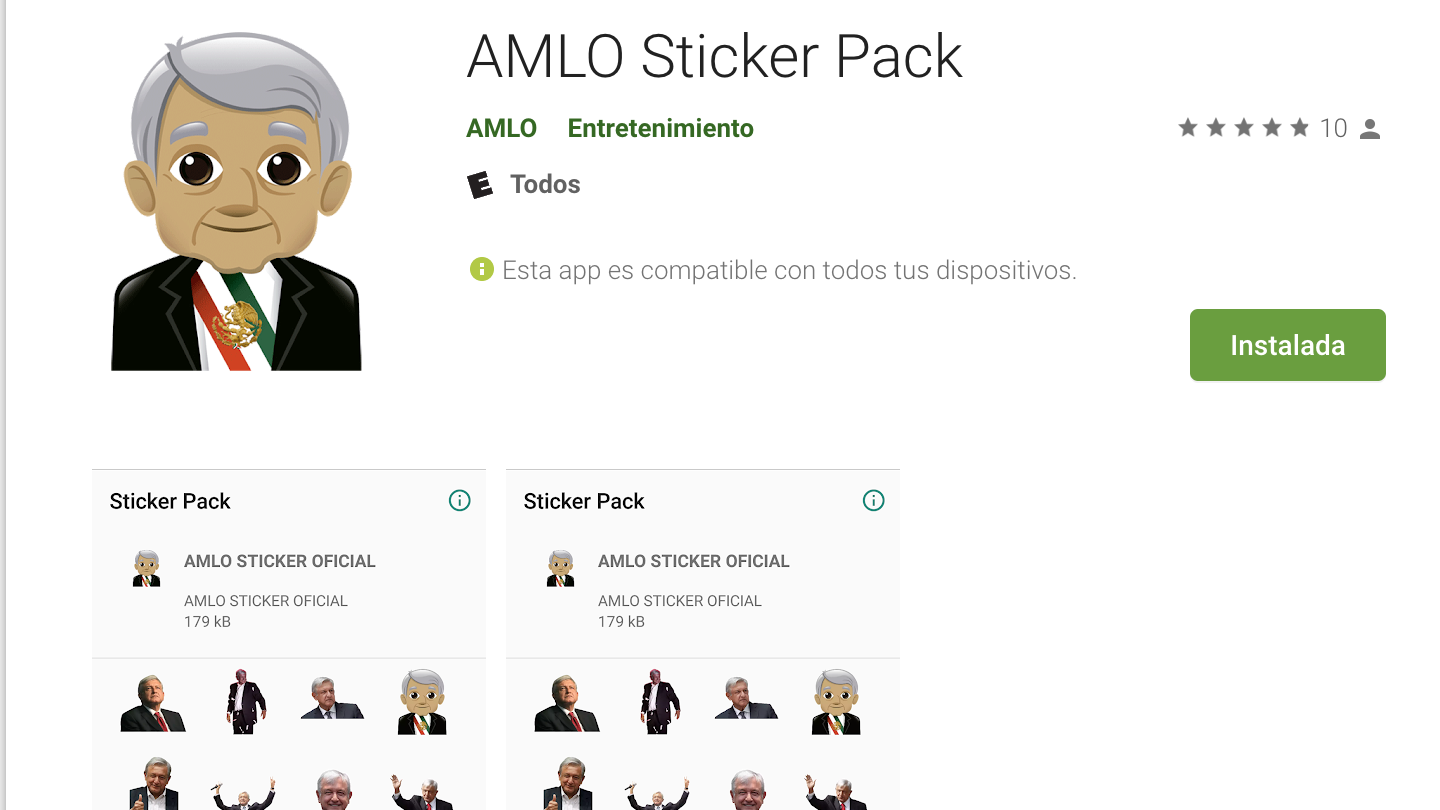 Las tendencias son una oportunidad para que comerciantes, desarrolladores y creativos hagan del mundo digital un escaparate y, ahora, ya tenemos en el mercado de aplicaciones los AMLO stickers pack, unas pegantinas que podrás descargar para utilizarlas en tus conversaciones de WhatsApp.