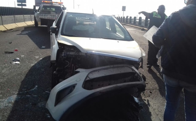 Por fortuna el saldo de este accidente registrado sobre el paso a desnivel de Paseo Tollocan quedó sólo en daños materiales, ya que no hubo personas lesionadas.