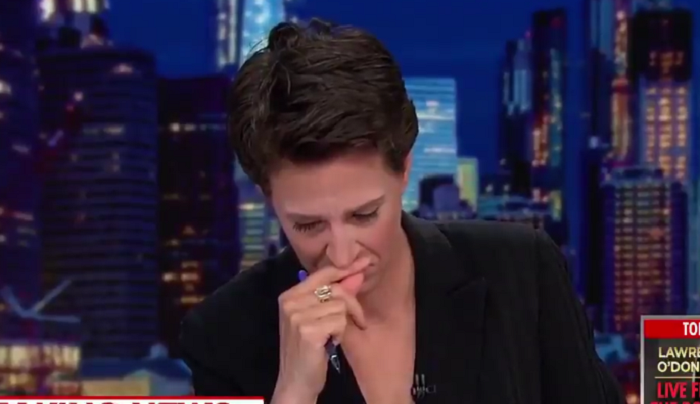Maddow pidió a los asistentes de la producción intercalar los gráficos de la transmisión, para que ella no saliera a cuadro, sin embargo, esto no fue posible y miles de espectadores fueron testigos de cómo intentó, sin éxito, aguantar el llanto.