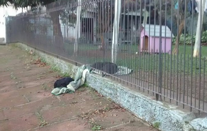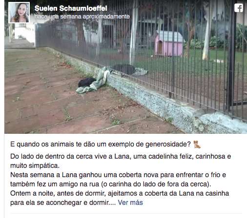 Lana es una perra de ochos meses de edad que fue adoptada por una pareja en el Valle del Sinos, en Rio Grande do Sul, Brasil, que compartió con un can de la calle una cobija a través de las rejas de su casa.