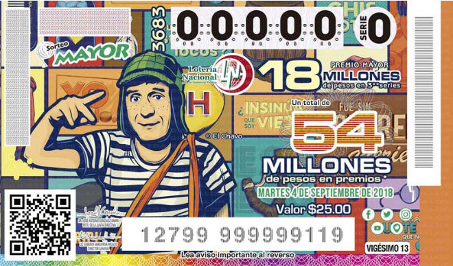 Personajes como El Chavo del Ocho, El Chapulín Colorado, El doctor Chapatín y El Chómpiras formarán parte de los billetes de Lotería para el sorteo del Premio Mayor del próximo 4 de septiembre, como parte de un homenaje que se rendirá a Roberto Gómez Bolaños, “Chespirito”.