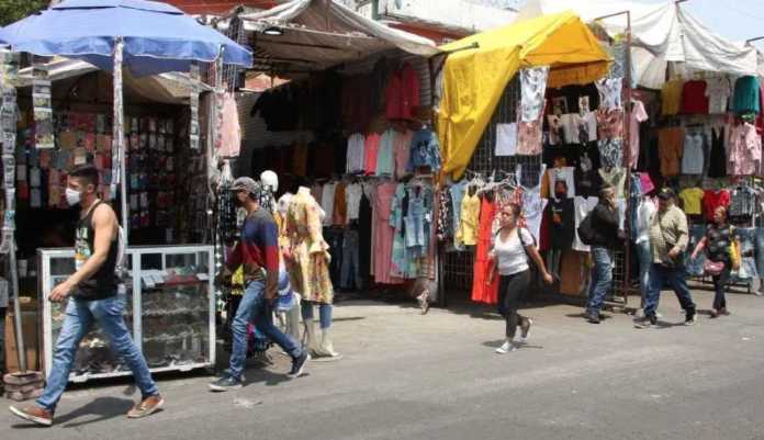 La mayoría de los negocios en el Barrio de Tepito, en la Ciudad de México, pese a que el semáforo epidemiológico se encuentra en color rojo.
