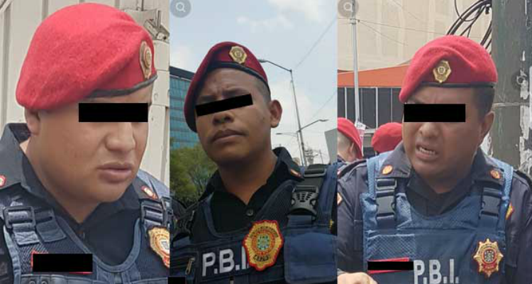 Al momento de descender en la estación Balderas, los ofendidos fueron interceptados por tres elementos de la Policía Bancaria e Industrial, quienes les advirtieron que los pondrían a disposición de las autoridades porque viajaban en un vagón exclusivo para damas; enseguida los condujeron a la salida.
