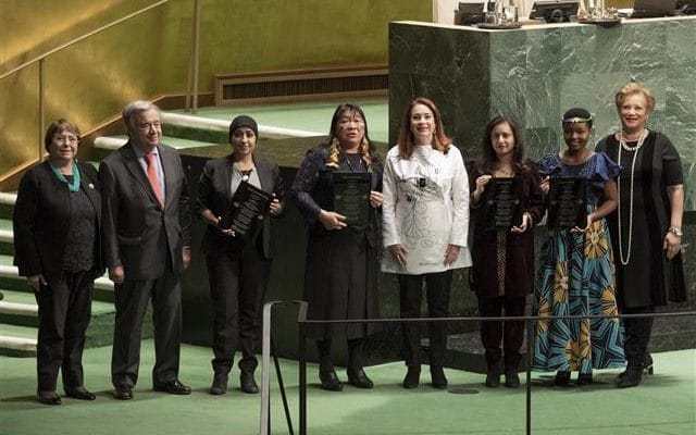 La ceremonia de imposición del galardón se llevó a cabo en la sala de la Asamblea General de las Naciones Unidas, en Nueva York; y el premio fue entregado por Antonio Guterres, secretario general de la ONU y Michelle Bachelet, Alta Comisionada para los Derechos Humanos de la ONU.