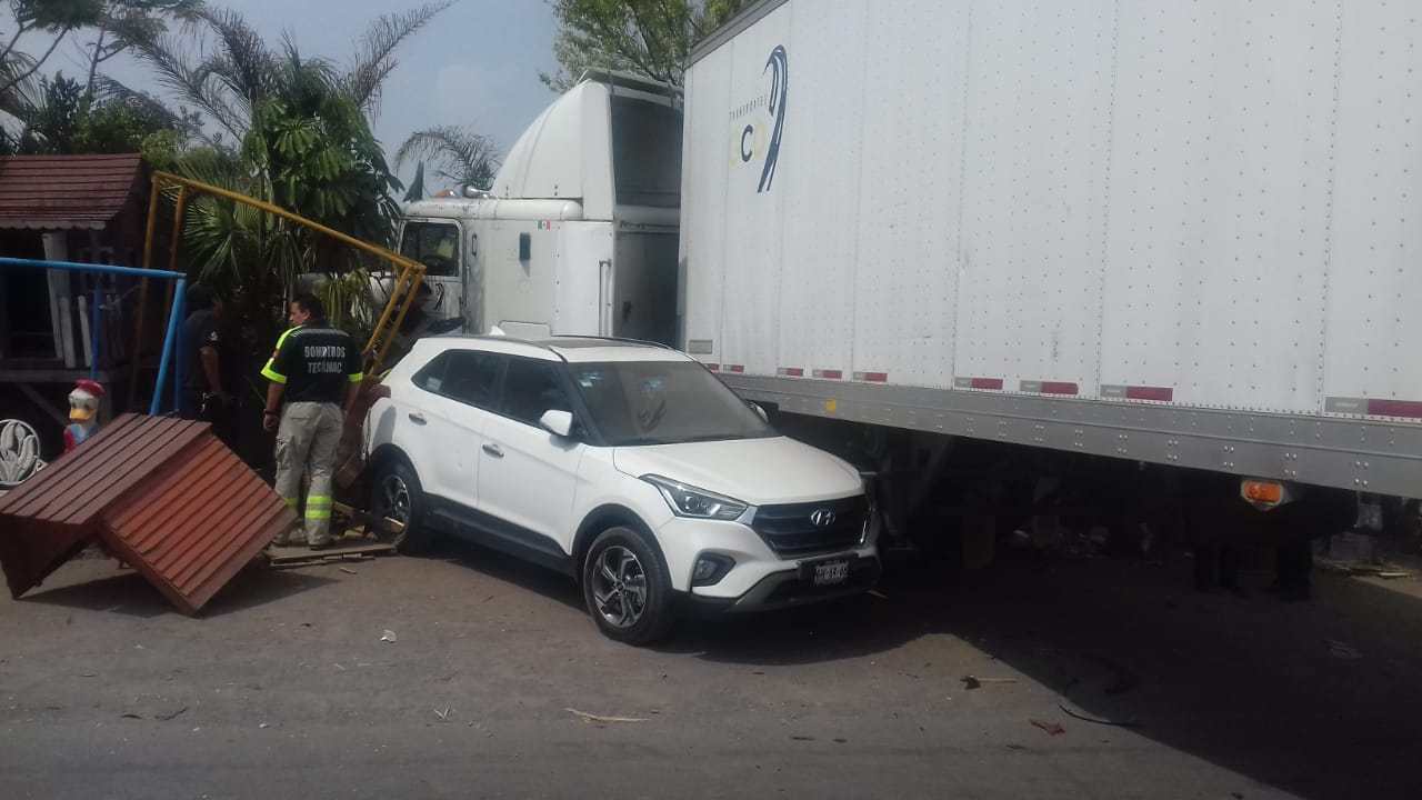 El accidente vehicular ocurrió a la altura del kilómetro 43 de la carretera federal Lechería-texcoco frente a la unidad habitacional “Los Héroes 5”, cuando el conductor de un tráiler sufrió un infarto e invadió el carril contrario, lo que provocó que impactara a dos automóviles que viajaban rumbo a Texcoco.