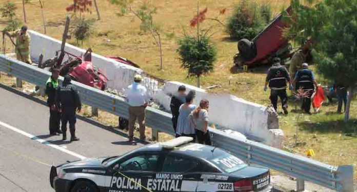 Peritos de la Fiscalía General de Justicia del Estado de México acudieron para iniciar las indagatoria necesarias y saber lo que originó el percance aunque se presume que el exceso de velocidad fue el principal motivo.