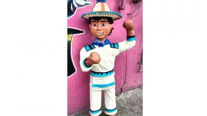 Para promocionar más la novedosa figura entre sus seguidores, el local de piñatas localizado en el centro de Reynosa comparó la piñata con una imagen del niño indígena Yuawi.