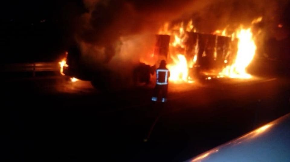 Esto sucedió durante la madrugada y los traileros sólo vieron cuando la pipa estaba envuelta en llamas.