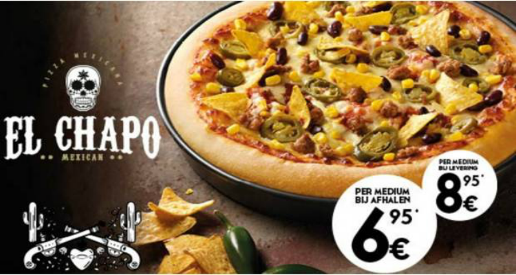 El pasado 29 de agosto, Pizza Hut lanzó un nuevo producto en Bélgica, la pizza ‘El Chapo‘, con ingredientes como maíz, carne enchilada picada, jalapeños, frijoles y nachos crujientes sobre una base de salsa de tomate y mozzarella.