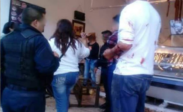 Al arribar a dicha carnicería ubicada en Juárez y Aldama, los uniformados encontraron a dos individuos liándose a golpes, cuando uno de ellos se encontraba lesionado por arma blanca; el pleito supuestamente se debió por una deuda económica.