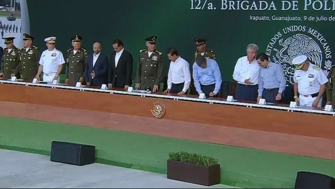 Después del evento, el Presidente de la República se trasladó a bordo de un helicóptero del Estado Mayor Presidencial, a Irapuato para inaugurar instalaciones de la 12 Brigada de la Policía Militar.