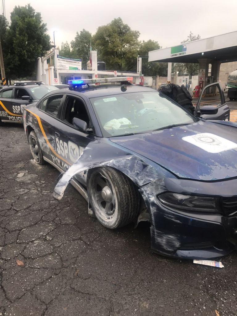 Una grúa de esta institución arriba al lugar para llevarse la patrulla a las instalaciones correspondientes.