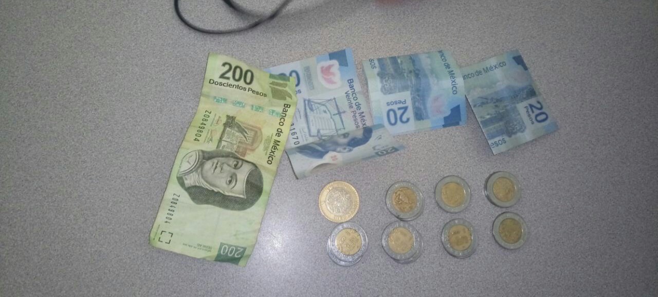 Los oficiales también le aseguraron a esta persona una bolsa de plástico que contenía mercancías como botellas de licor y billetes de diversas denominaciones de los cuales no pudo comprobar su procedencia por lo que fue remitido al Ministerio Público iniciándose una carpeta de investigación por el presunto Delito de Robo con Violencia, para determinar su situación jurídica.