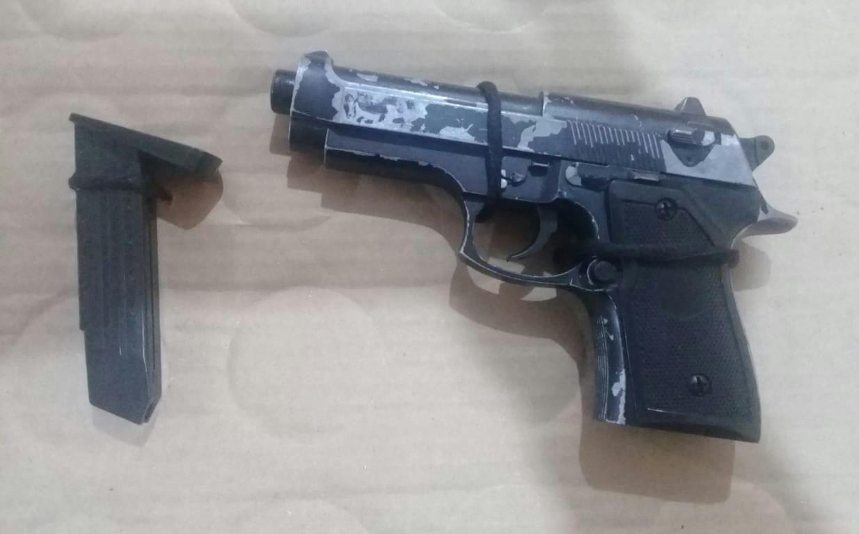 Tras leerle sus derechos y el motivo de su detención, los uniformados le realizan una revisión de rutina, encontrándole entre sus pertenencias al interior de una mariconera de vinipiel, un arma de fuego con la leyenda “Made in China” así como diversas monedas y billetes de los cuales no supo explicar su procedencia.