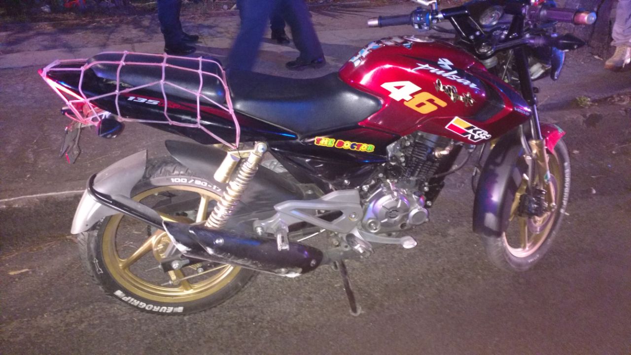 Los ocupantes de la motocicleta explicaron a los uniformados que este vehículo se los habían prestado, sin poder revelar el nombre del propietario, sin embargo al proceder a la revisión del número de serie y motor en el centro de Monitoreo del C-4, se confirma que la motocicleta marca Bajaj-135 modelo 2017 color rojo con negro sin placas de circulación, cuenta con un Reporte de Robo Vigente.