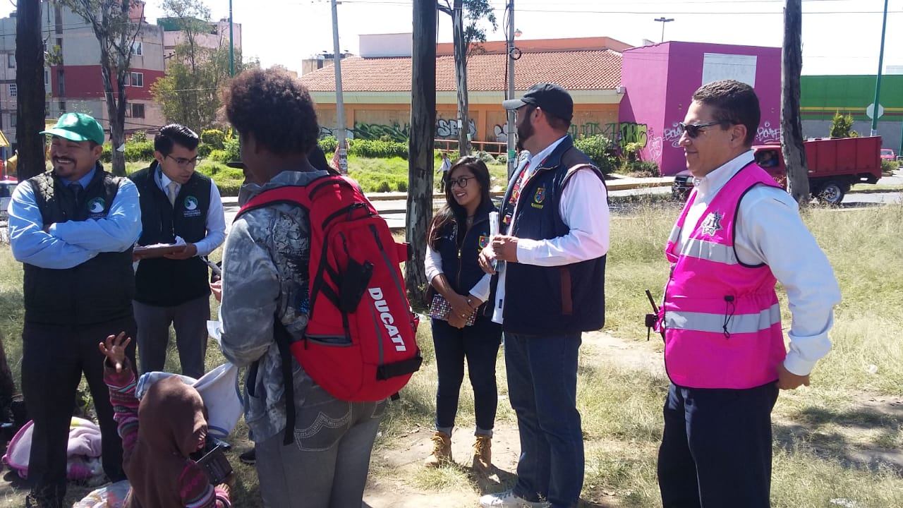 Elementos de Prevención del Delito de la Policía Municipal en conjunto con personal de la Defensoría Municipal de Derechos Humanos acudieron a varios puntos de Atizapán donde regularmente se localizan grupos de personas migrantes.
