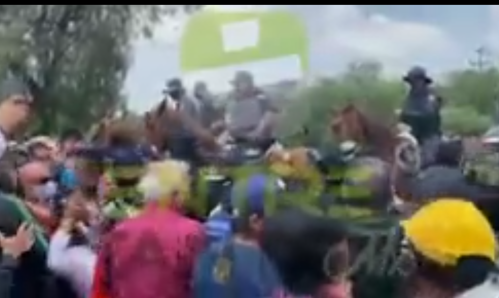 No obstante, minutos después de que caminaron sobre la avenida Constitución, tomando su «Sana Distancia» , como ya lo habían convenido, llegaron policías a pie ya caballo intentando deshacer la protesta.