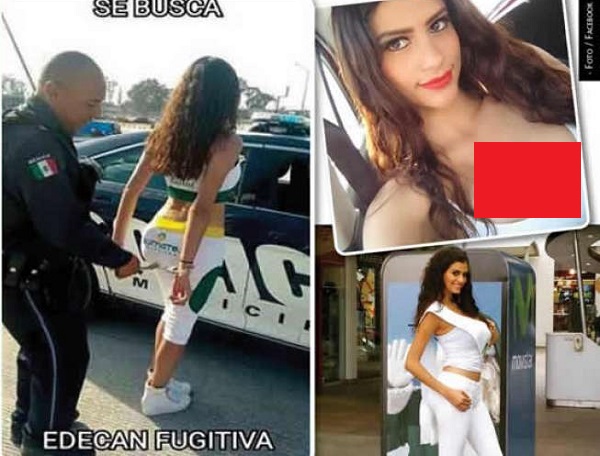 La fotografía fue subida por el mismo edecán, quien le pidió al policía que la esposara para tomarse una fotografía para su foto de perfil de Facebook, en donde la publicó con la leyenda “Se busca edecán fugitiva.”