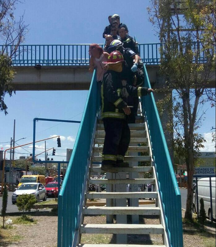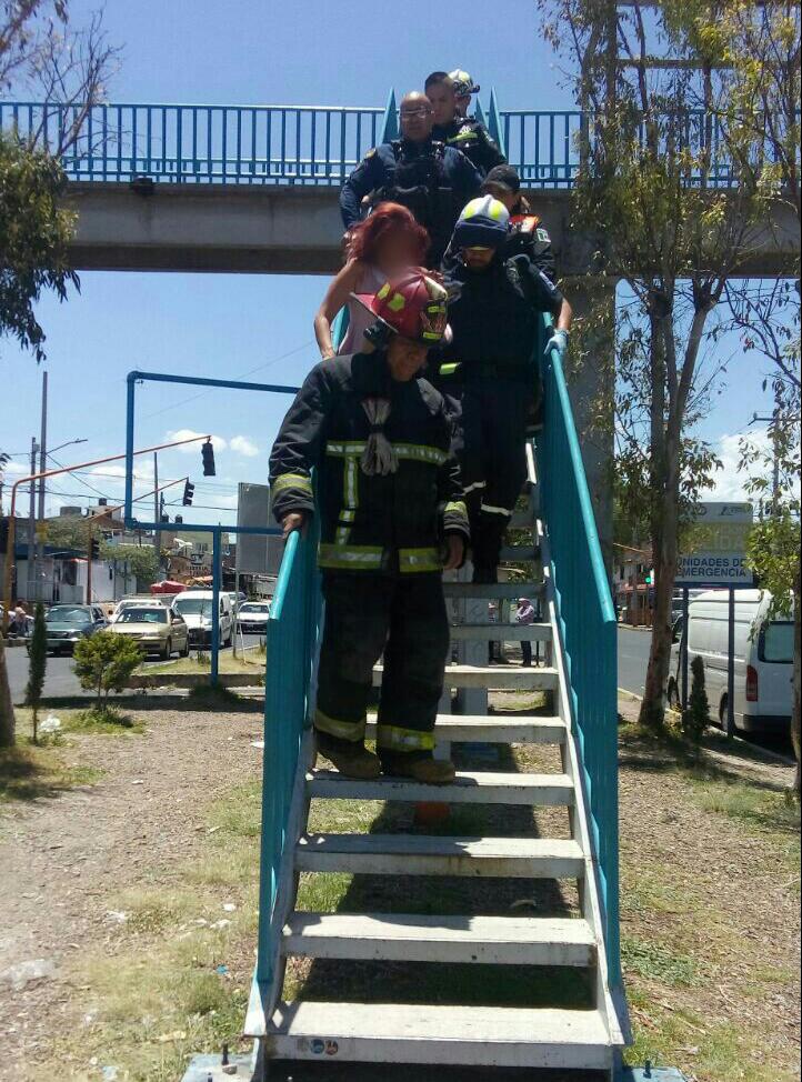 Al encontrarse realizando sus recorridos de seguridad y vigilancia por inmediaciones de la colonia Tepalcapa, elementos de la Policía Montada de Atizapán fueron alertados por un grupo de personas, quienes sorprendidos observaron como una mujer de 30 años de edad de forma intempestiva subió al puente peatonal de la avenida Ignacio Zaragoza con la intensión de arrojarse al vacío.