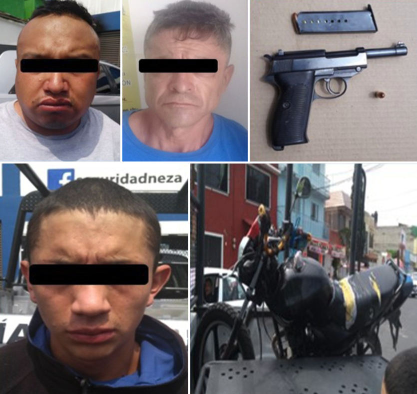 Debido a la inmediata intervención de elementos de la policía municipal de Nezahualcóyotl, fue posible la detención de tres sujetos que integraban una peligrosa banda delictiva dedicada al robo a cuentahabientes en calles cercanas a bancos y cajeros de la localidad, así lo informó el titular de la Dirección General de Seguridad Ciudadana Jorge Amador Amador.
