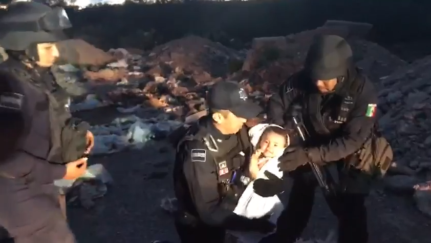 A través de un video publicado por la Policía Federal se observa el momento en que elementos de la corporación localizaron, la noche del pasado miércoles, a la menor Mya Fernanda, de 11 meses, a la orilla de la carretera San Luis Potosí – Rioverde.