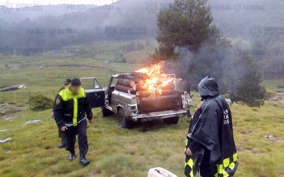 La Secretaría de Seguridad (SS) y de Probosque, capturan a una persona del sexo masculino que transportaba madera probablemente de procedencia ilegal en una camioneta, misma que incendió en su intento por escapar de las autoridades.